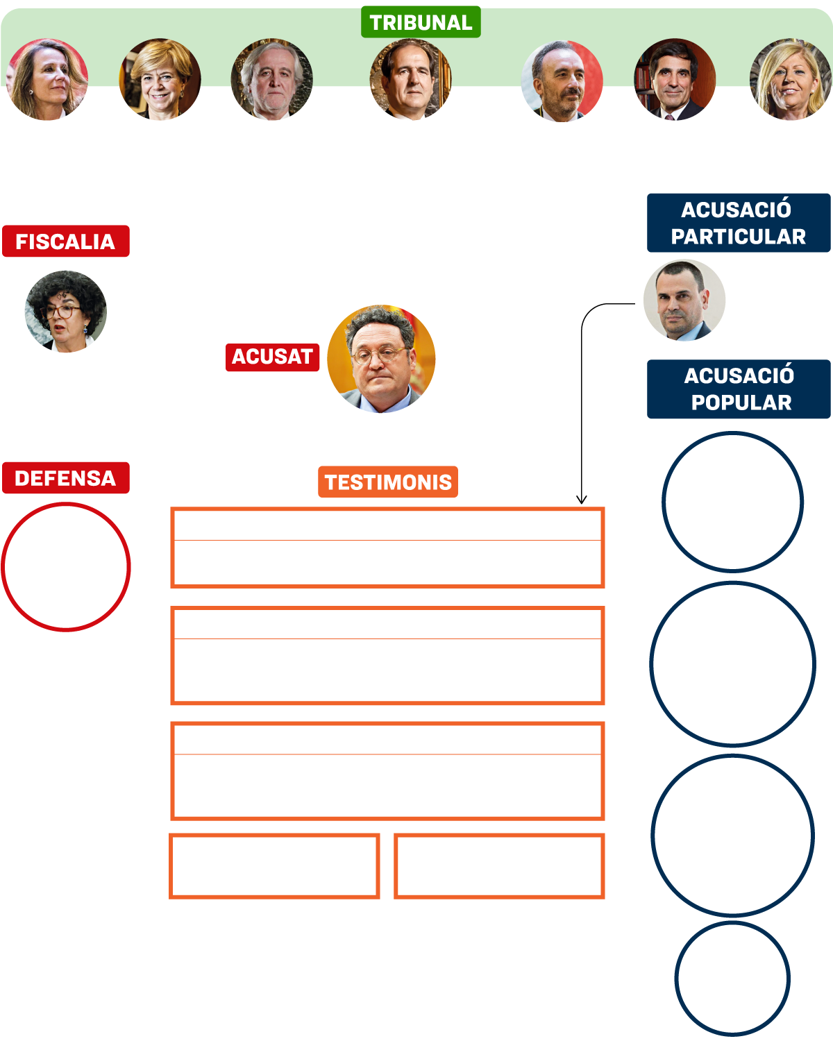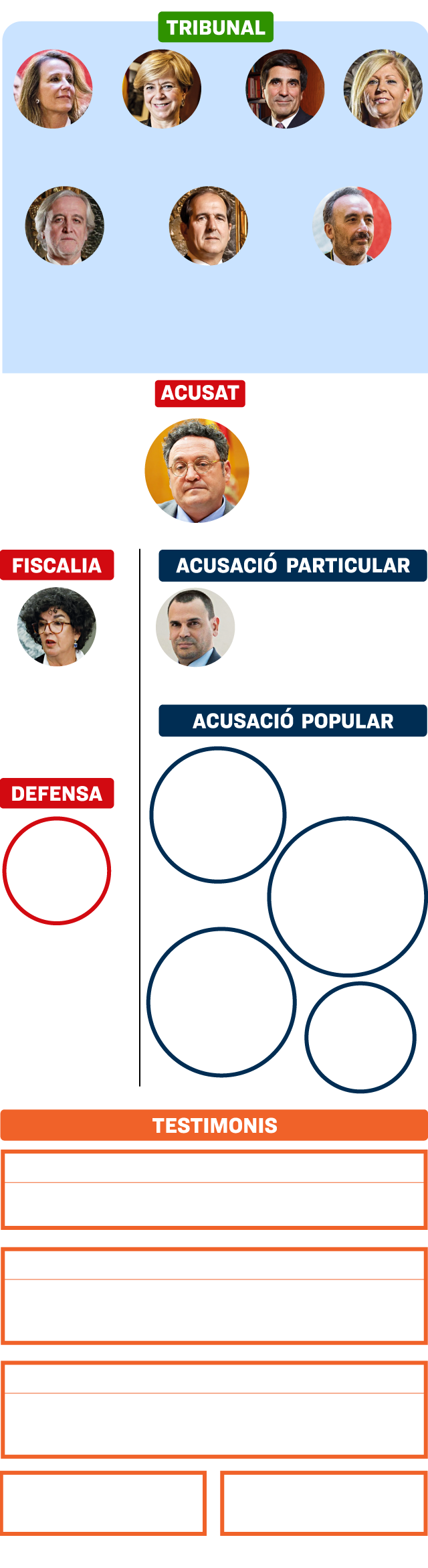 García Ortiz is not being defended by a private law firm; instead, he has entrusted this task to the State Attorney's Office. Two State Attorneys will be present during the trial, attempting to dismantle the accusations in order to secure his acquittal. They will be Consuelo Castro and Iñaki Ocio. The Process of National Reorganization also resurfaces in this team because Castro, who served as State Attorney General between 2018 and 2024, was the one who decided to reduce the charge from rebellion to sedition, which carries lesser prison sentences. During the sessions, the defendant will be allowed to sit next to her. He is not scheduled to testify until the fifth session, on Wednesday, November 12.